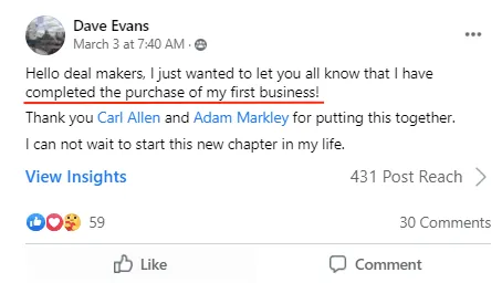 • Acquisitions School - 12 months access to Dealmaker CEO and community